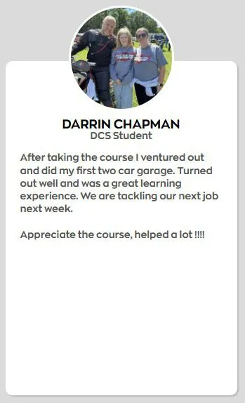 After taking the course I ventured out and did my first two car garage. Turned out well and was a great learning experience. We are tackling our next job next week.