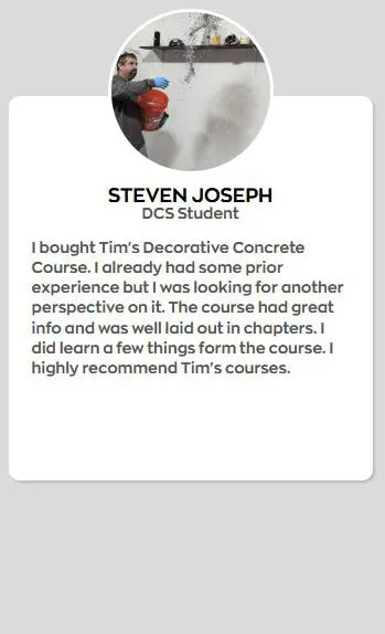 I bought Tim's Decorative Concrete Course. I already had some prior experience but I was looking for another perspective on it. The course had great info and was well laid out in chapters. I did learn a few things form the course. I highly recommend Tim's courses.